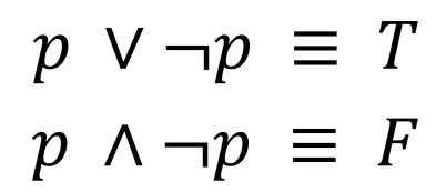 여기서 T는 항상 참인 복합명제, F는 항상 거짓인 복합명제를 나타낸다.