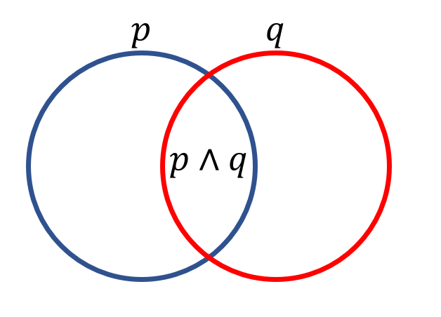 p와 q가 있고 p논리곱q는 p와 q의 교집합으로 생각할 수 있다.