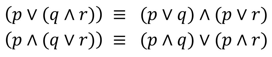 사실 논리합 연산자를 수학에서의 +, 논리곱 연산자를 x으로 생각하면 사칙연산의 분배법칙과 동일하다.