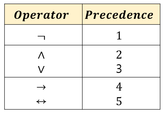 복합명제를 구성하는 연산자가 어떤 순서로 적용되어야 하는지를 명확히 하기 위해