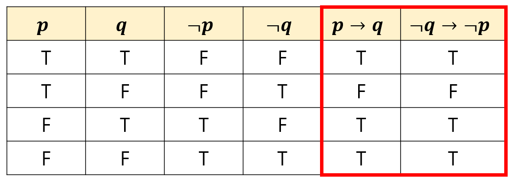 ※ p→q 와 ¬q →¬p는 논리적 동치다.